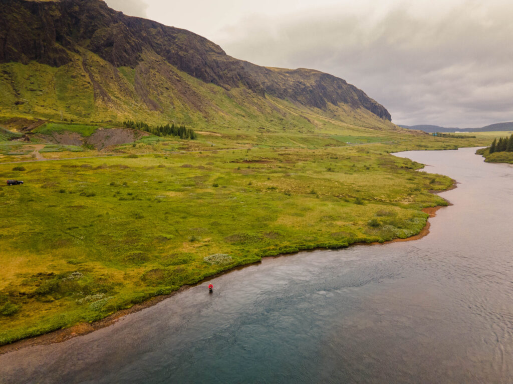 The Sog is Iceland’s largest spring-fed river and flows from Lake Þingvallavatn, the country’s largest lake. Less than an hour’s drive from Reykjavík, the Sog is known for its clear water and lush and beautiful surroundings, close to many of the country’s major historical sites. The Sog is also famous for its large salmon. The Bíldsfell beat has been popular with anglers for decades.